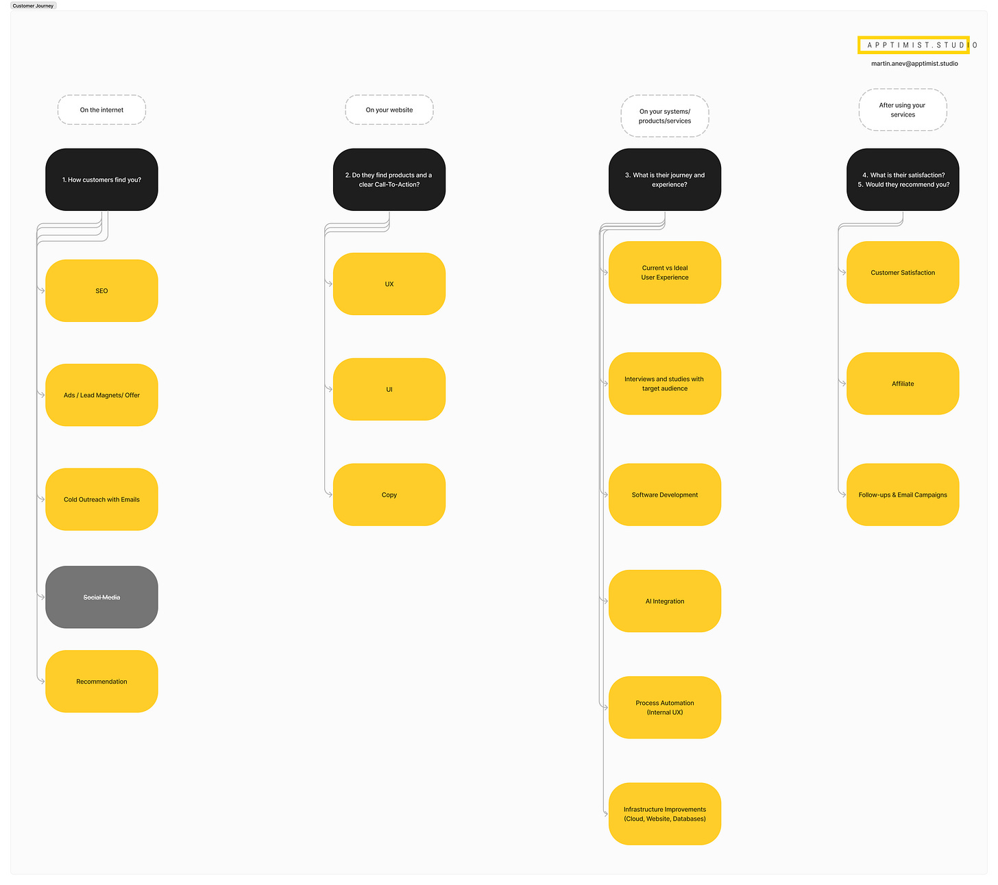 At Apptimist Studio, we understand that every business is unique, which is why we offer customized strategies to help define and optimize your customer journey. By delving deep into your business model and customer base, we tailor our approach to fit your specific needs.